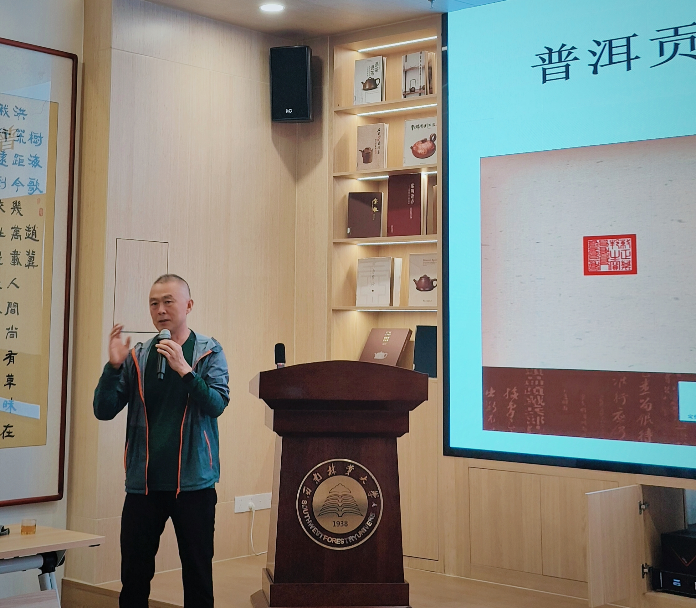 李路老师以其深厚的学术积淀和独特的洞察视角,通过翔实的史料和生动的案例,深入剖析了普洱茶发展历史中的关键节点和核心人物,系统阐述了普洱茶在历史上的辉煌成就与兴衰变迁。在讲述的同时,他还展示了一系列珍贵的历史书籍、文献资料和文物图片,这些珍贵的资料不仅为讲座增色添彩,更为现场师生提供了普洱茶珍贵历史文化的直观感受?/p>